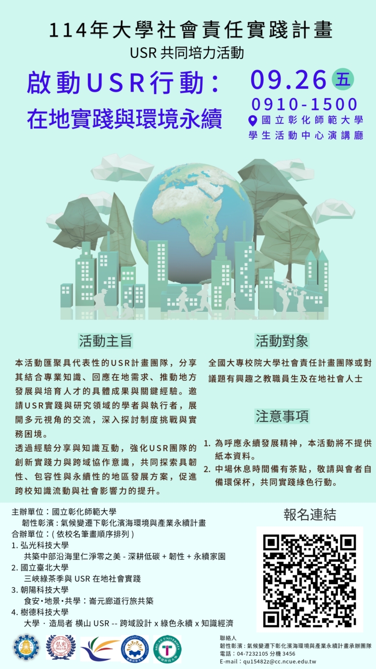 - 活動地點:國立彰化師範大學進德校區學生活動中心1樓演講廳。