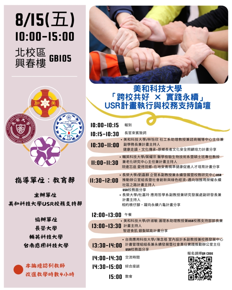 【轉知】美和科技大學舉辦「跨校共好、實踐永續」USR計畫執行與校務支持論壇