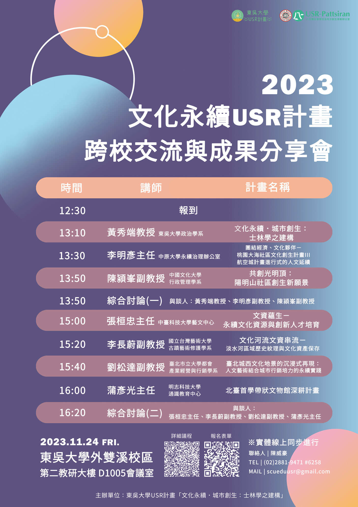 ☆活動名稱:2023文化永續USR計畫跨校交流與成果分享會