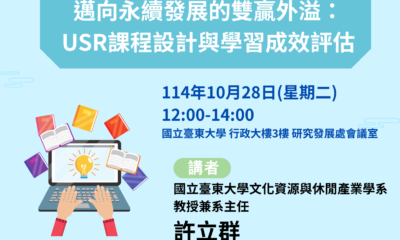 【轉知】國立臺東大學辦理「教學實踐研究計畫教師增能主題座談-邁向永續發展的雙贏外溢:USR課程設計與學習成效評估」