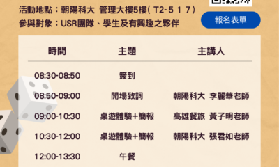 【轉知】朝陽科技大學辦理「樂齡共遊-桌遊跨校USR工作坊」活動